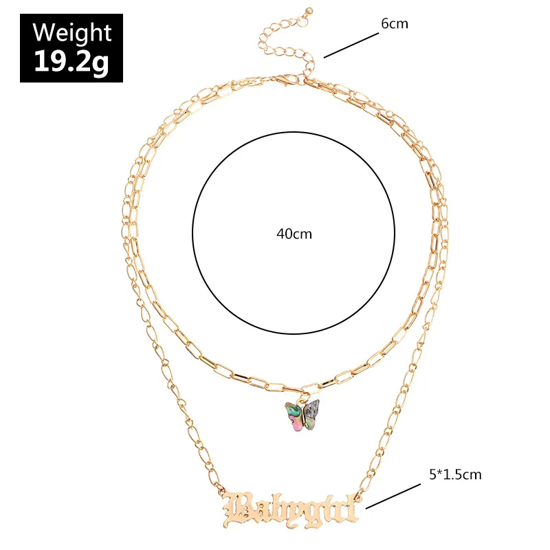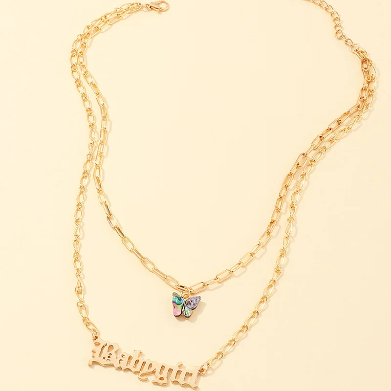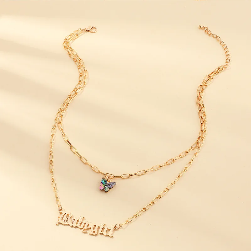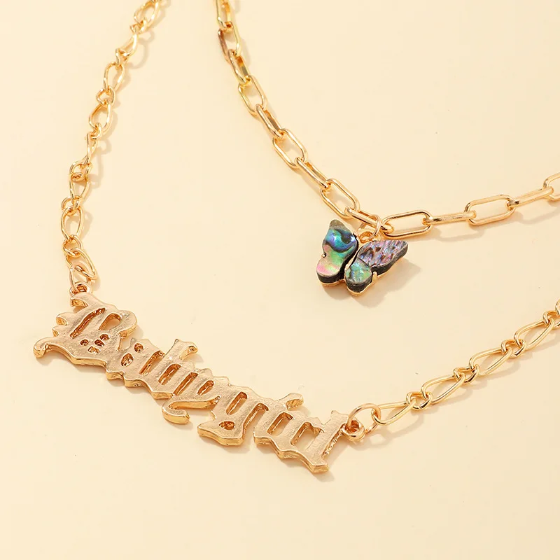 Оптовая продажа 2020, европейские и американские ювелирные изделия, ожерелье в сетку с красными буквами для девочек, цепочка до ключиц с морскими ушками и бабочками