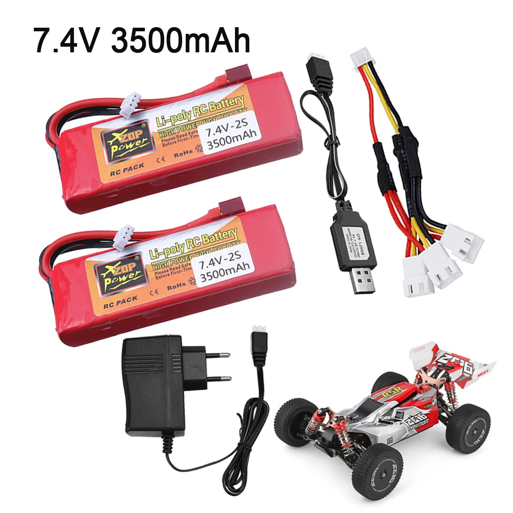 Аккумулятор 7,4 В для Wltoys 114 144001 RC автомобильный аккумулятор 2s 7,4 В 3500 мАч перезаряжаемый литий-полимерный аккумулятор и зарядное устройство для Wltoys 144001 12428
