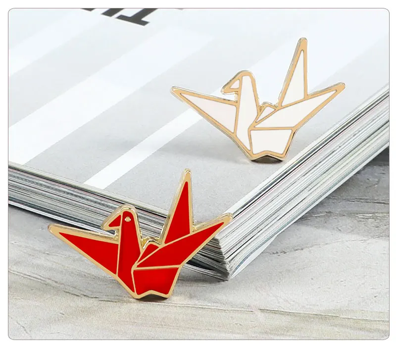 Красно-белые милые аниме значки брошь мультфильм тысяча бумажных журавлей удачи эмалевые заколки джинсовая одежда лацкан булавка ювелирные изделия для женщин