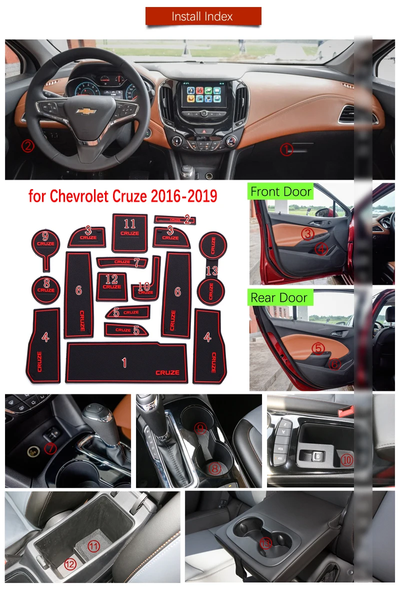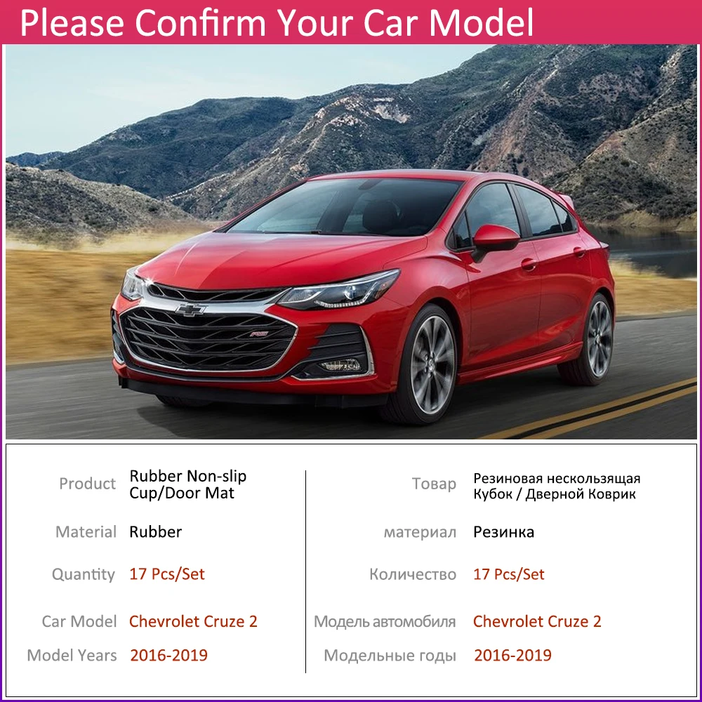 Противоскользящий резиновый подушкой для чашки, дверной коврик для Chevrolet Cruze 2 MK2 Chevy Sedan Hatch 2016 ~ 2019, аксессуары, коврик для телефона 2017 2018