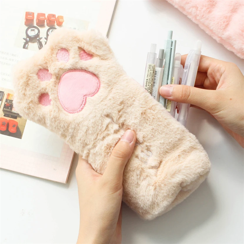 Кавайный чехол для карандаша школьные принадлежности estojo escolar, Плюшевые канцелярские принадлежности, милые пеналы с кошачьей лапой для девочек
