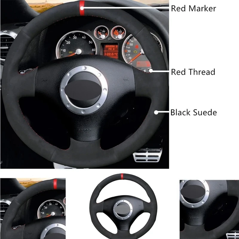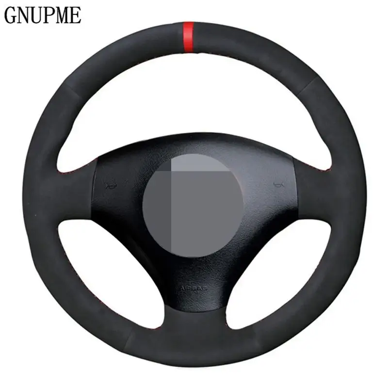 Мягкая черная замша красный маркер чехол рулевого колеса автомобиля...