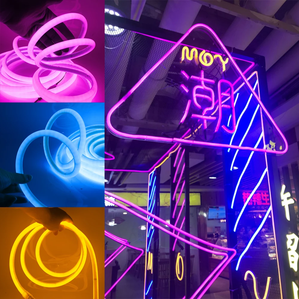 Круглая неоновая Светодиодная лента 360, гибкая неоновая Светодиодная лампа 2835 в, 120 светодиодов на метр, водонепроницаемая уличная декоративная 8 цветов, 12 В