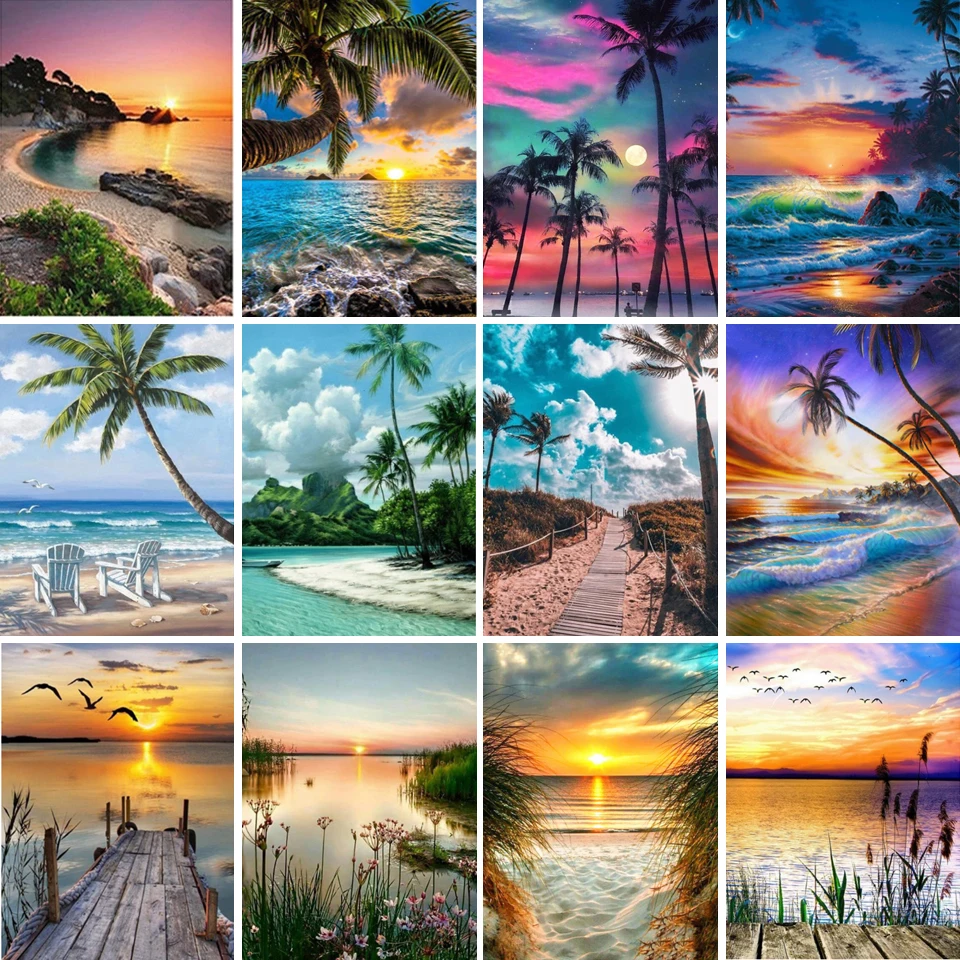 Набор для алмазной вышивки 5D сделай сам, закат, морской пляж, вышивка крестиком, пейзаж, мозаика, картина, декор для подарка