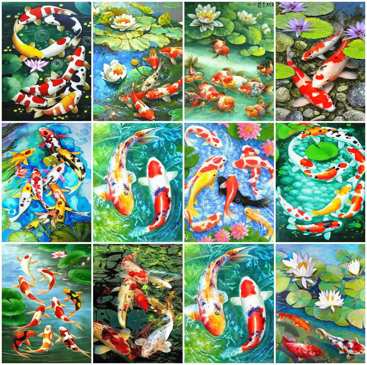 AZQSD краска для рыбы, покраска по номерам, Акриловая картина для животных, масляная краска, покраска по номерам, домашний декор, подарок, настенная художественная ручная краска, набор холста