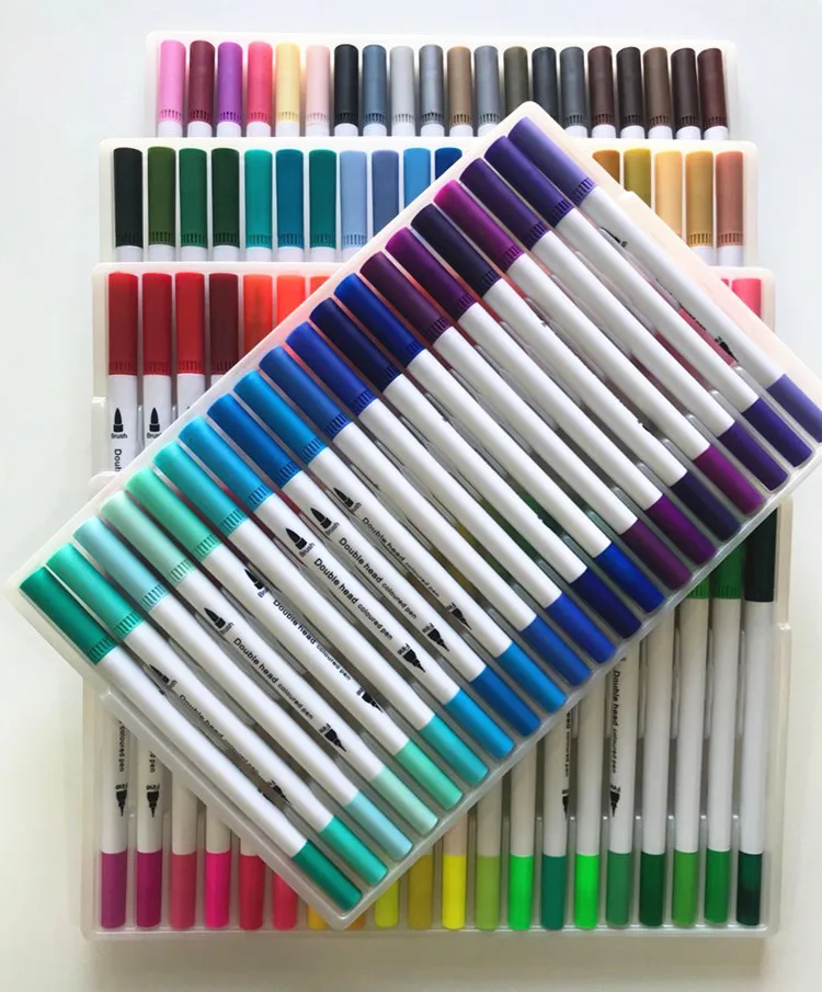 Набор маркеров для рисования, 12243648 шт., цветные, двусторонние, акварельные, кисть для рисования, ручка, принадлежности для дневника, Канцтовары