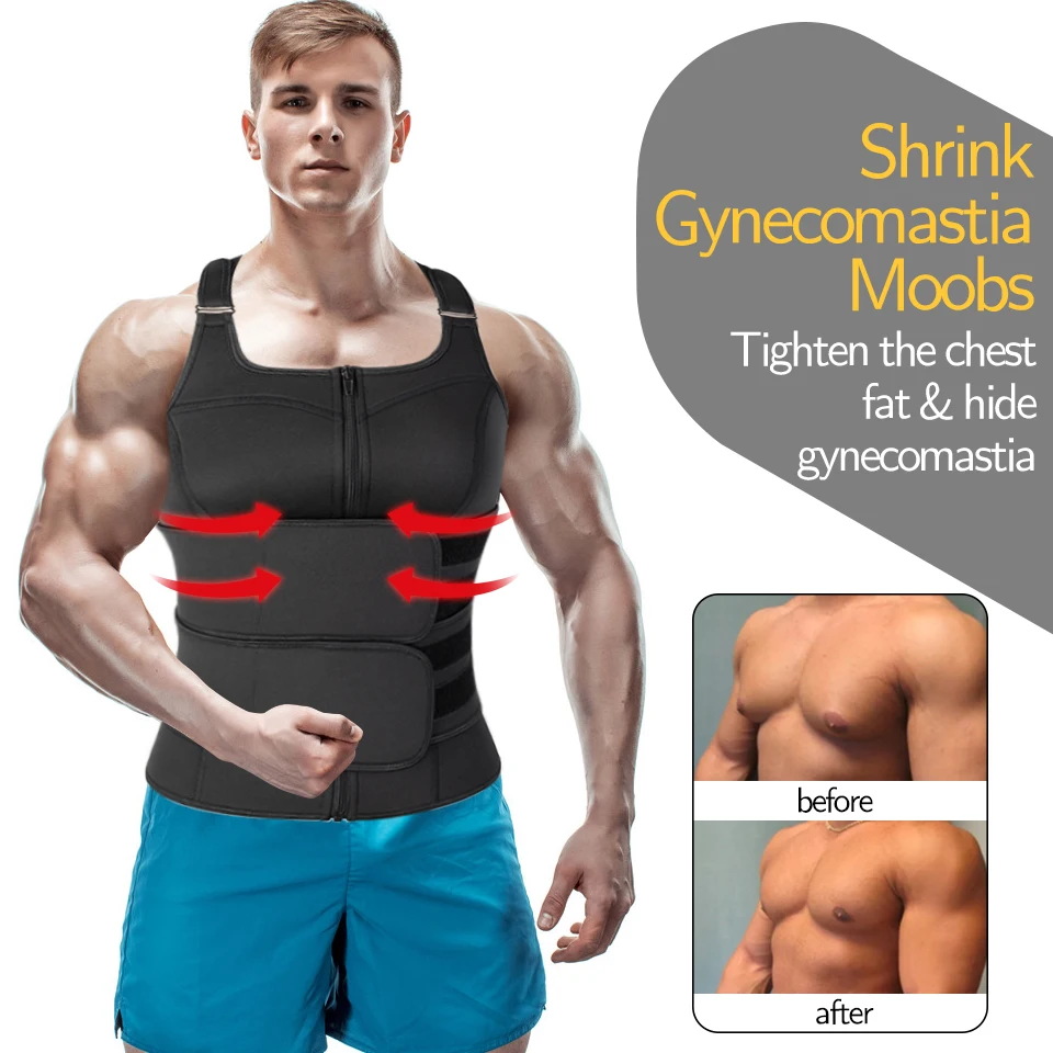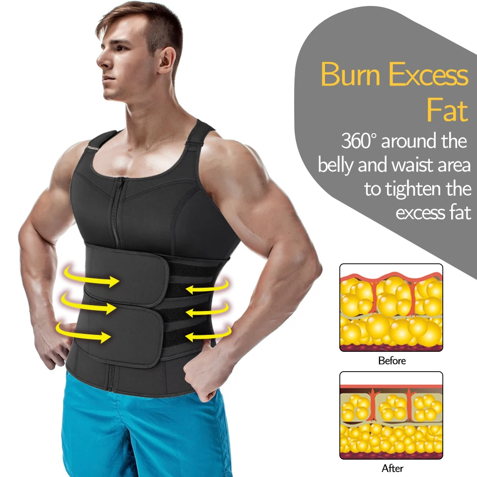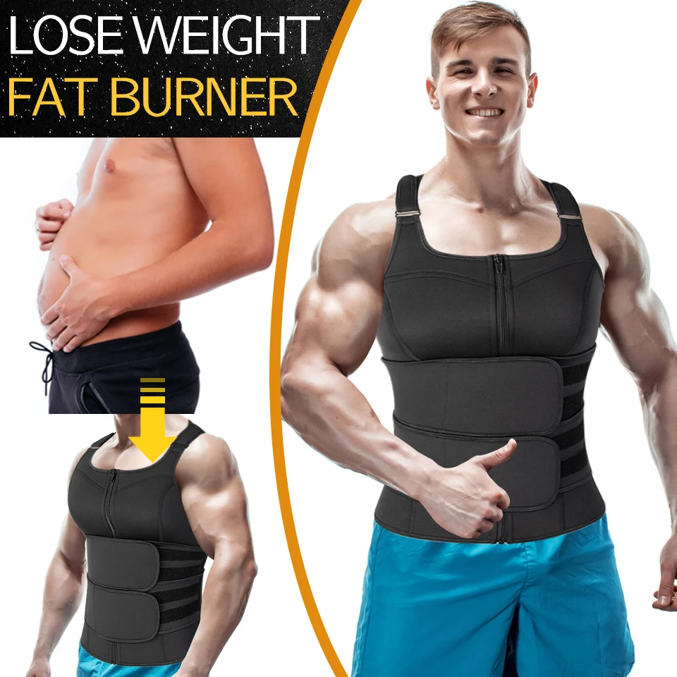 Мужской утягивающий формирователь для тела, тренажер для талии, сауна, тренировочный жилет, компрессионная рубашка, фитнес пояс, потеря веса, сжигатель жира