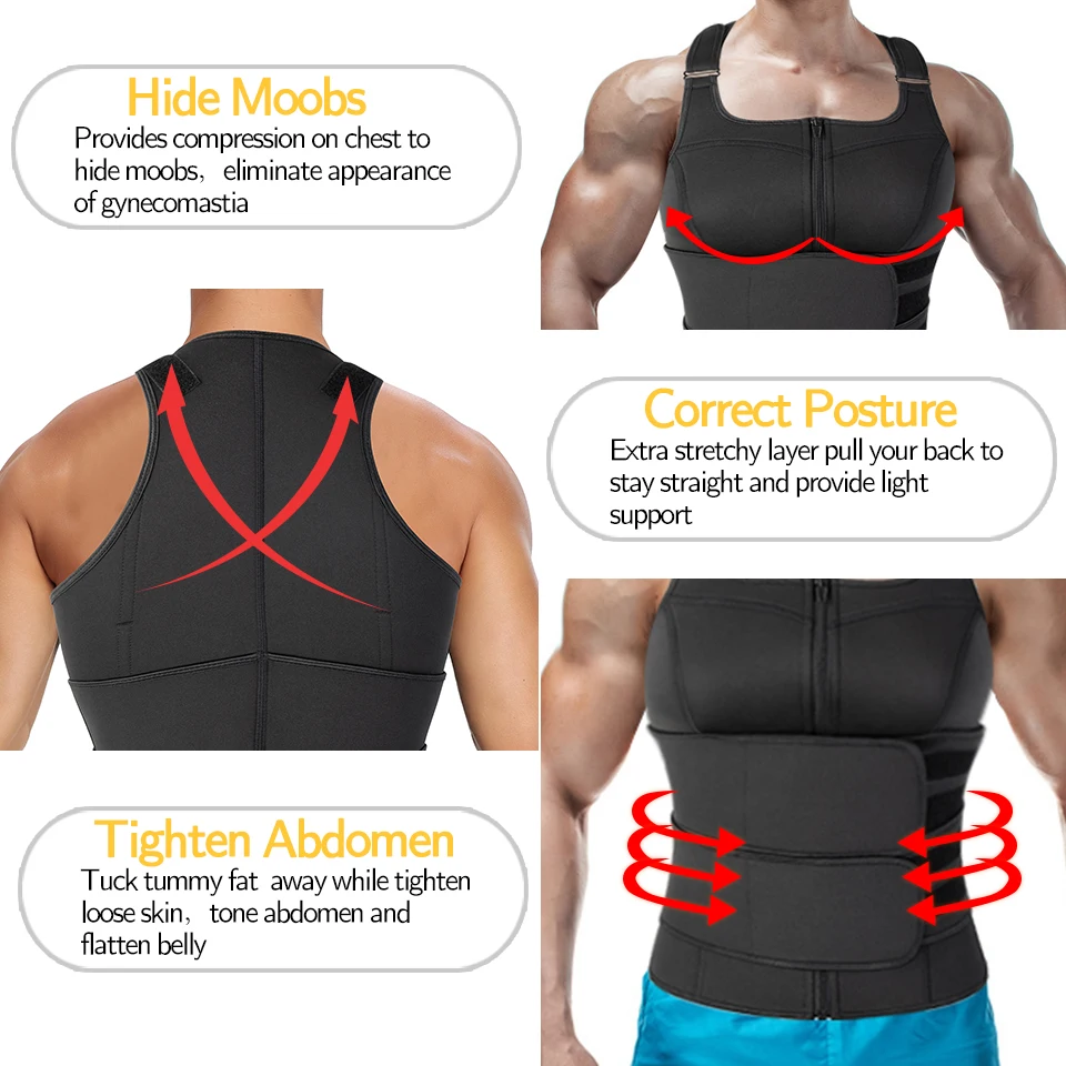 · Цвет: черный, · Материал: оболочка: полиэстер 100%; Ядро: неопрен 100% · Размер: S,M,L,XL,2XL,3XL · Кости: 4 Стальные Кости ·????Легкий вес, нательное нижнее белье????-- Высокоэластичное волокно, которое гарантирует, что мужской костюм рубашка не повредит вашу кожу частично во время бега, бега трусцой, пеших прогулок, обеспечивая превосходный комфорт и полный спектр движений, чрезвычайно дышащий, теплопоглощающие и отводящие пот. ·????Сжигание жира помощник????-Наша майка специально разработана, чтобы уменьшить внешний вид ГИНЕКОМАСТИИ, спрятать «мужские груди», иметь дело с «пивным животом». Дышащий материал для улучшения кровообращения и сжигания жира и сильного формирования груди во время тренировки или тренажерного зала. ·????Скрытый и тонкий формирователь тела????-- Высококачественный полиэстер Идеально плотно облегает ваше тело, комфортный, но практичный дизайн нашей мужской компрессионной майки для похудения обеспечивает мгновенный эффект похудения при ношении его под всеми типами одежды, такими как рубашки для тренировок, футболки, свитера и официальные рубашки, вы почти забудете носить спортивный жилет. ·????Впитывает пот, одежда спортивного типа????-Наш корректирующий жилет использует тепло-удерживающую неопреновую ткань, чтобы увеличить ваше естественное тепло тела и стимулировать потоотделение с любым типом физической активности. Надевание пота во время тренировок или ежедневных занятий или даже на работе создает ощущение горячей сауны. ·????Сжимайте и мгновенно сжимайте живот????-Эта компрессионная рубашка хорошо работает с помещением свободной кожи в плотное место, которое поможет вам избавить от нежелательных скручивания жира, комочков и маффинов, не вызывая дискомфорта, сплющяет грудь и живот. ·????Осанки и спинкой????-- Мужской утягивающий шейпер для тела, облегчающий Термическое сжатие живота и поясничная поддержка, чтобы помочь осанке для спины и abs во время тренировки. Так что вы будете иметь более твердую осанку, более высокую поддержку спины. ·????Подходит назначение????-Эта мужская Спортивная майка лучше всего подходит для зумбы, йоги, тренажерного зала, фитнеса, бега, велоспорта и многих других видов спорта, сжигания жира и похудения и бодибилдинга, уменьшает размер живота и увеличивает давление на живот, помогает вам иметь хорошую форму тела.