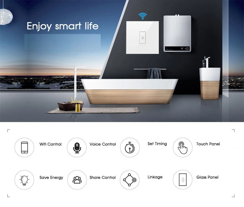 Specialized специализированный переключатель для высокомощной бытовой техники Высокое качество 20А реле, более стабильное и безопасное, макс. 4400 Вт ※ Сенсорная панель из закаленного стекла Сенсорная кнопка высокой чувствительности, быстрая реакция, без задержек Remote дистанционное управление с помощью приложения из любого места Управление (включение/выключение, Установка таймера) устройство удаленно с помощью приложения «Smart Life»/«Tuya Smart» на вашем смартфоне с помощью Wi-Fi или сети 4G/5G, не требуется концентратор/шлюз. ※ Голос Управление Работает с Amazon Alexa, Google Home и Siri(iOS 12,0 или более поздней версии), вы можете управлять голосовым устройством через голосовые команды. ※ Многофункциональный таймер: Обратный отсчет/Расписание/циркуляция/случайный/инчинг -Вы можете установить 1 или более таймер, чтобы сделать бойлер включенным/выключенным автоматически, или работать в течение определенного периода времени, а затем автоматически закрыть. Совместно совместно используемое устройство и групповое управление Несколько сотовых телефонов могут управлять одним и тем же переключателем котла; Один мобильный телефон может управлять несколькими переключателями одновременно.