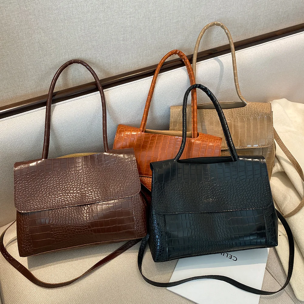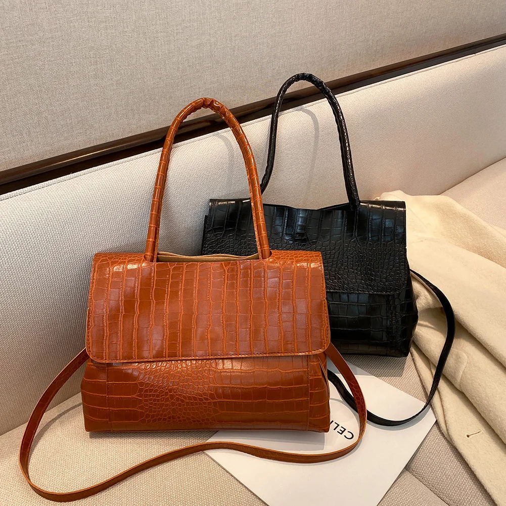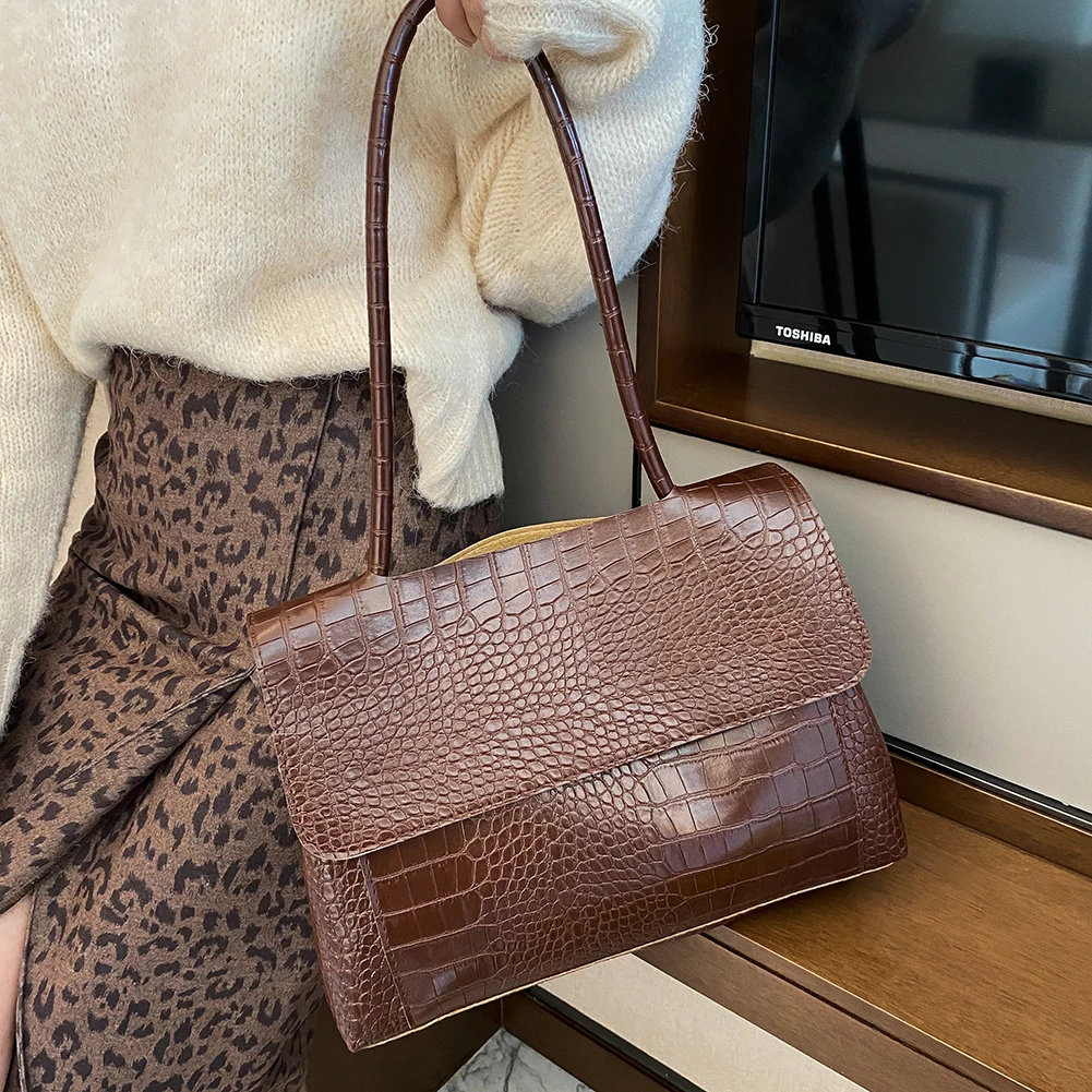Сумка-тоут женская из экокожи, дизайнерский саквояж на плечо с узором под кожу крокодила, вместительный чемоданчик, повседневный мессенджер, 2021