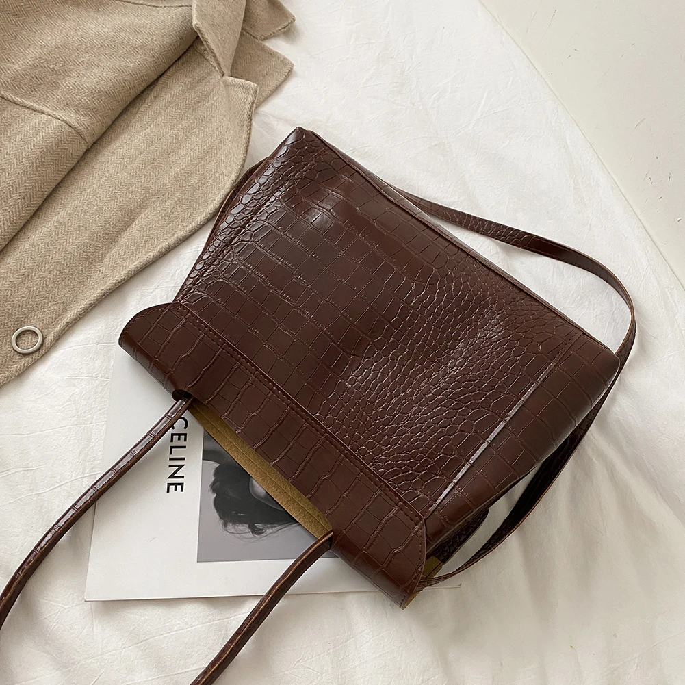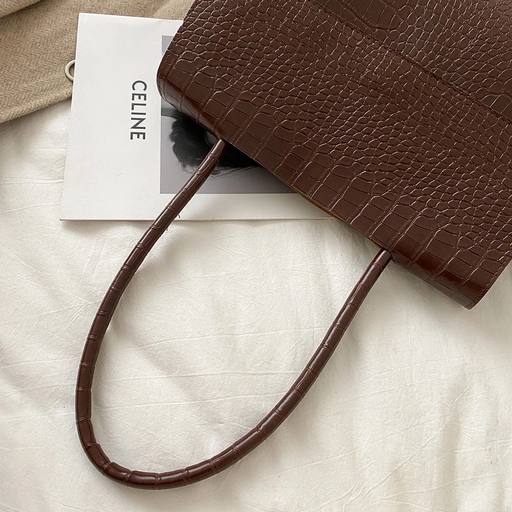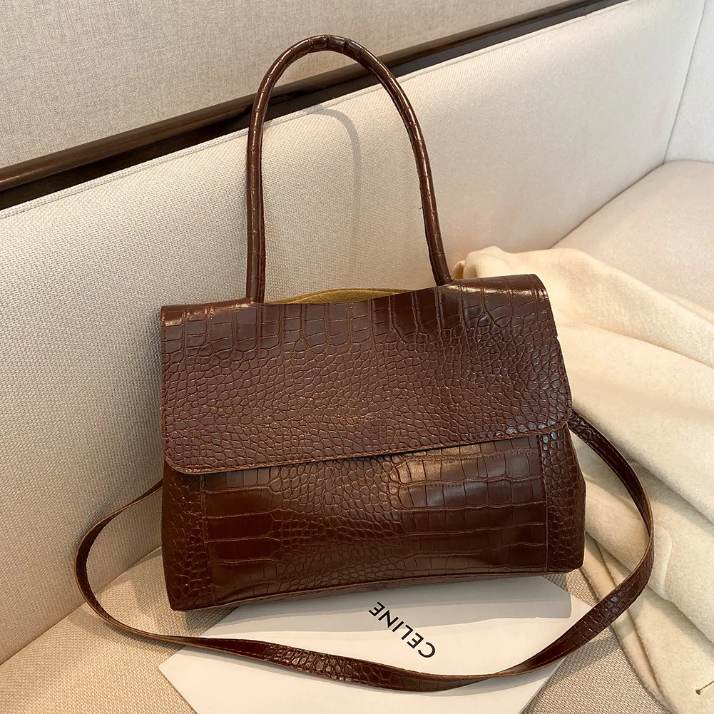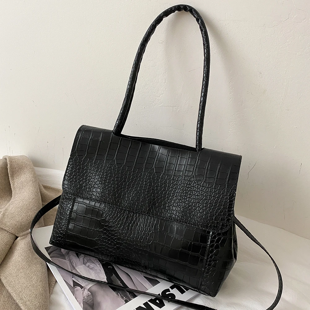 Сумка-тоут женская из экокожи, дизайнерский саквояж на плечо с узором под кожу крокодила, вместительный чемоданчик, повседневный мессенджер, 2021