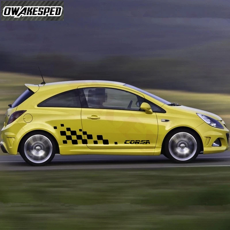 Наклейки для кузова автомобиля с обеих сторон, автомобильные аксессуары для дверей, гоночные решетки, спортивные графические виниловые наклейки для VAUXHALL Opel Corsa OPC c e d