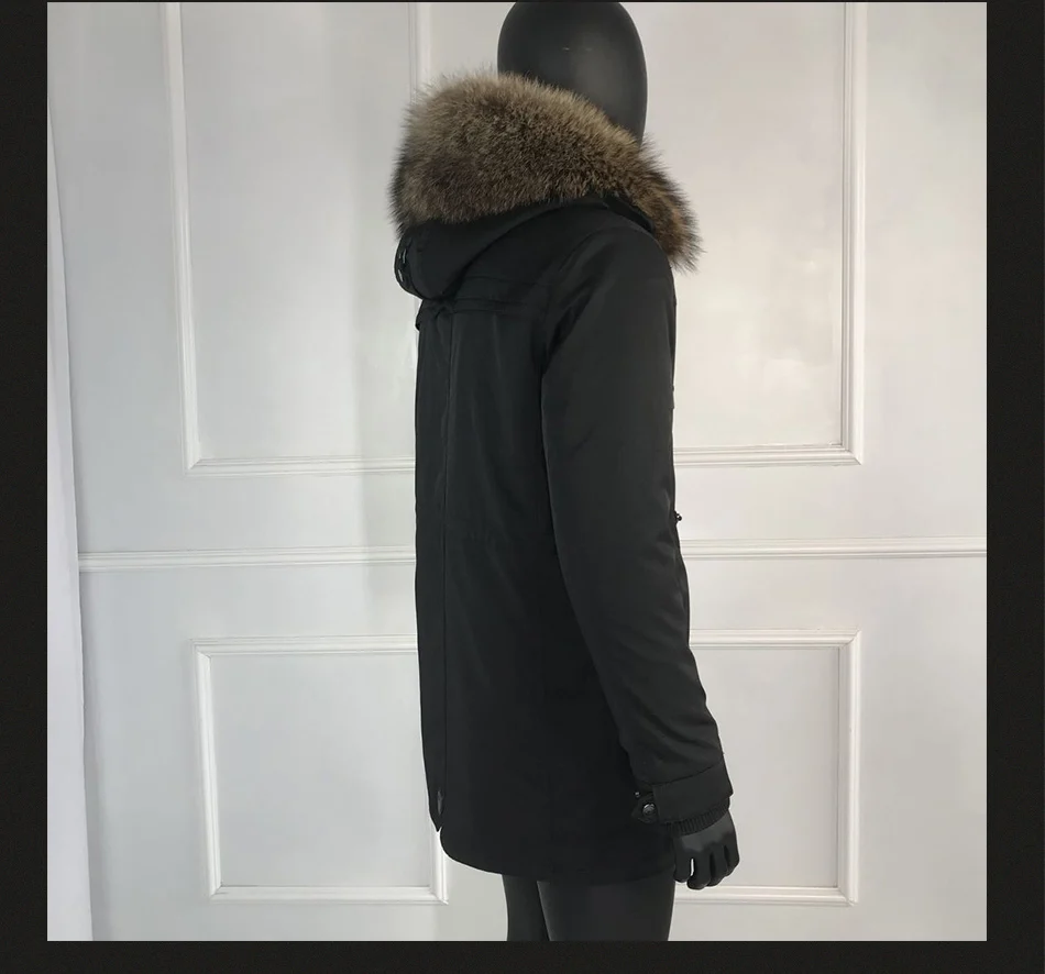 Мужские парки, пальто, куртка из натурального меха енота, зимняя мо...