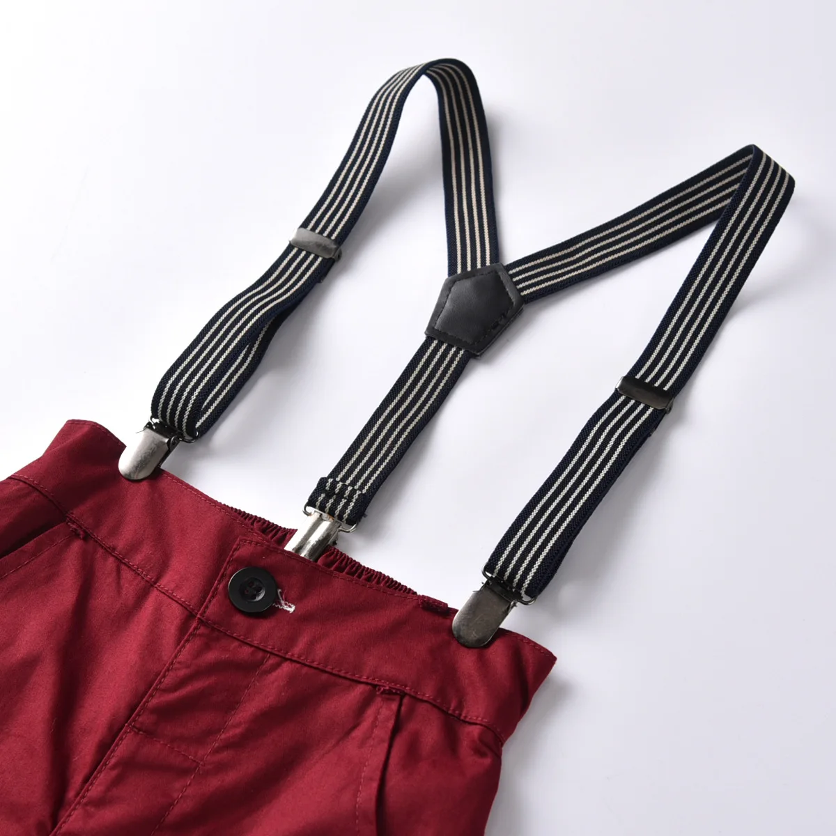 Костюмы джентльменов для маленьких мальчиков на свадьбу, детская одежда из чистого хлопка, комплект из рубашки в полоску и брюк с поясом, Новогодняя одежда