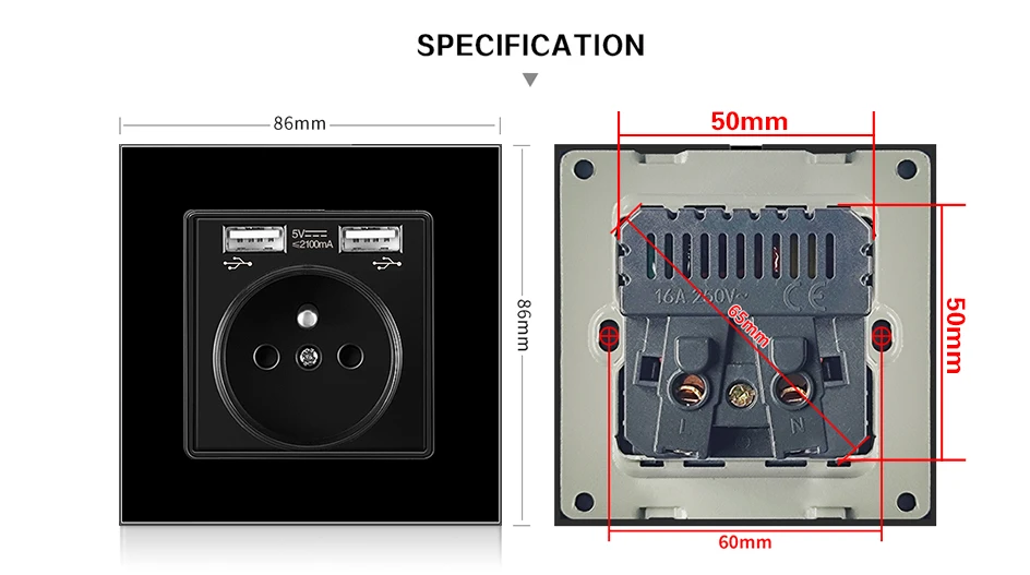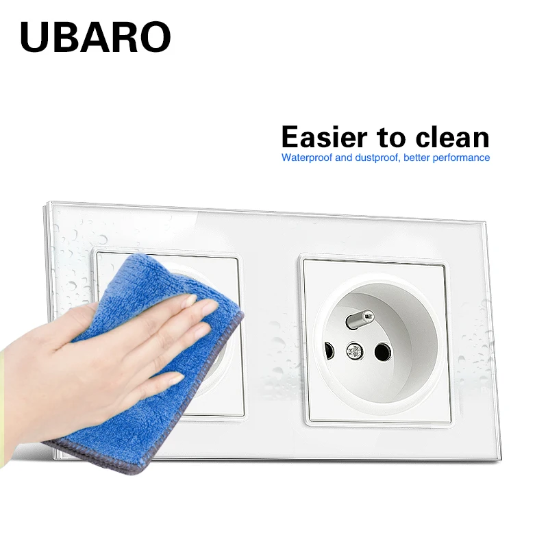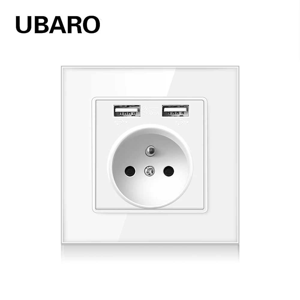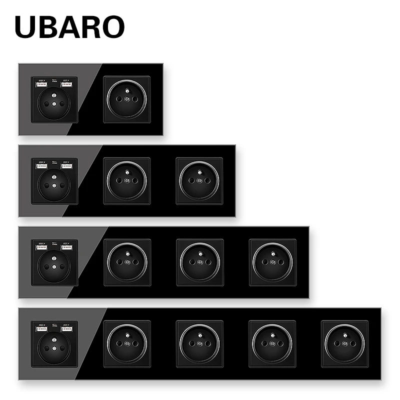 Настенная розетка UBARO из закаленного стекла, 5 В, 2 А, французская стандартная, черная, с Usb-разъемом, AC100-250V16A