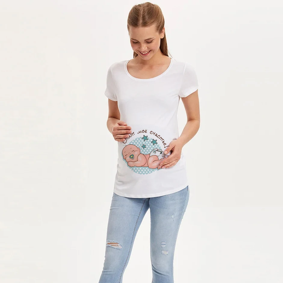 Рубашка для беременных Милая Детская футболка с круглым вырезом и короткими рукавами для беременных топы для мамы детская футболка