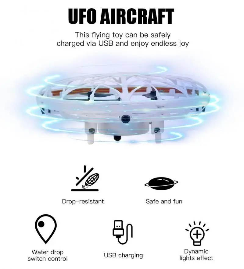 2: Пропеллер был снабжен гибким сетчатым барьером, не касался необходимости, детские глаза и кожа от повреждений. Не нужно покупать аккумулятор, эти летающие игрушки безопасны для USB зарядки для бесконечного удовольствия.