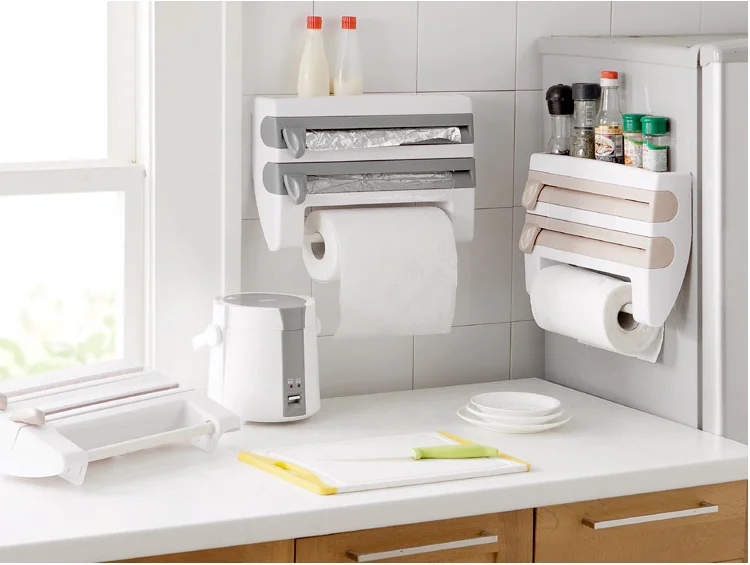 Кухонная 3-слойная пластиковая оберточная диспенсеры для резки настенная сумка для хранения бумажных полотенец из алюминиевой фольги