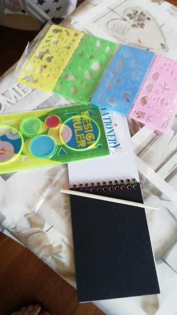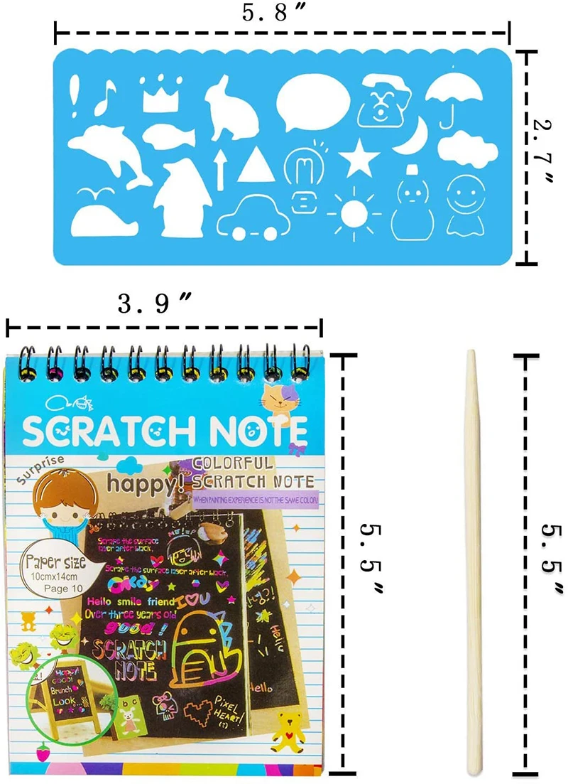 1 книга для рисования царапинами (10 бумаг для рисования царапинами)1 деревянная палочкаШаблоны для рисования 4 шт.Линейка Wanhua, 1 шт.