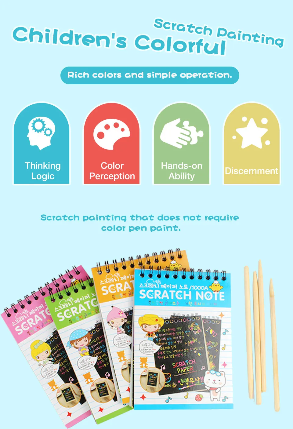 Скретч-бумага для рисования детей, 6 шт.компл., для самостоятельного рисования, волшебных цветов, радужных открыток и трафарет для граффити детских игрушек для рисования ZXH