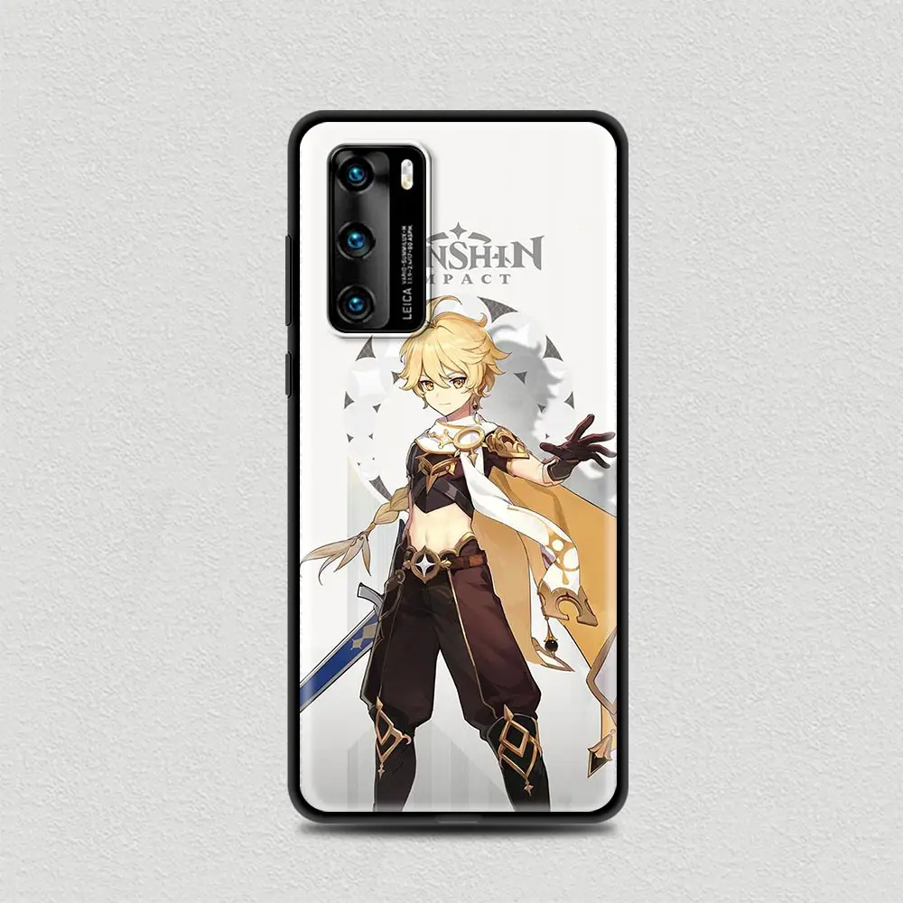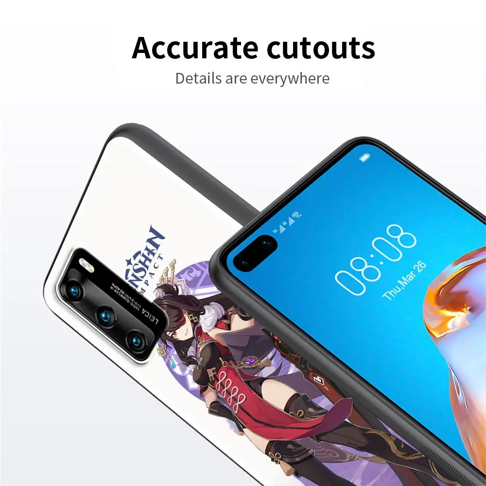 Силиконовый чехол Genshin Impact для Huawei P30 Lite P40 P20 Pro P10 Lite P Smart 2019 2020, черный