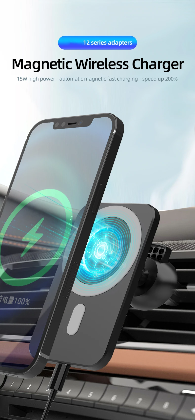 Магнитное автомобильное зарядное устройство 15 Вт для iPhone 12, автомобильное беспроводное зарядное устройство с креплением, автомобильный держатель для телефона с быстрой зарядкой, подставка для вентиляционного отверстия для iPhone 13