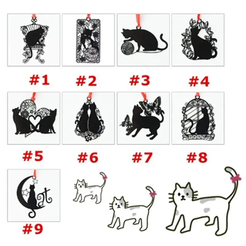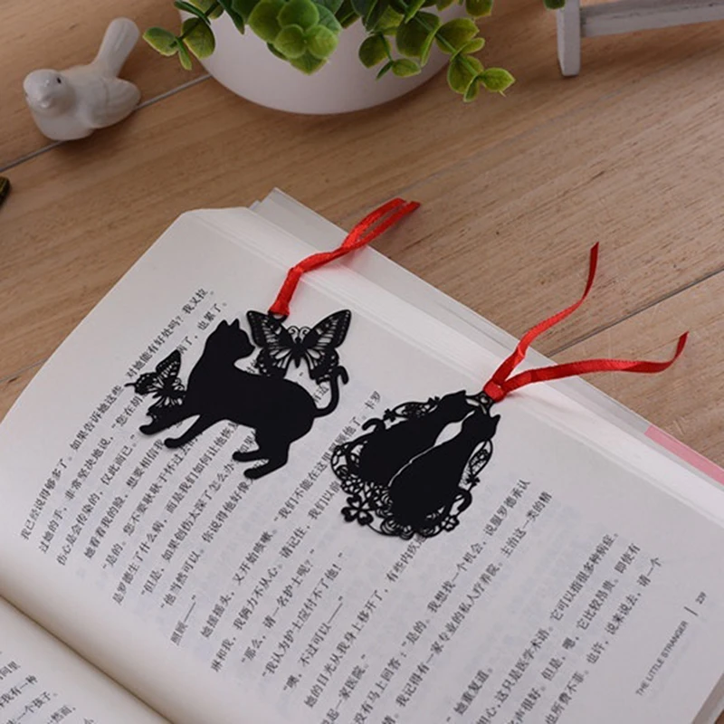 Милая Черная кошка-держатель для книг, 2 шт., бумажный маркер, металлическая полая Закладка, канцелярские принадлежности, закладки для книг