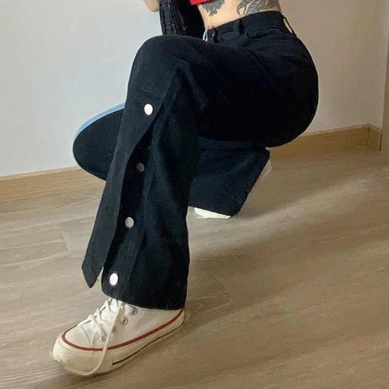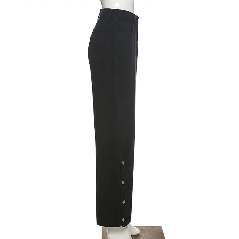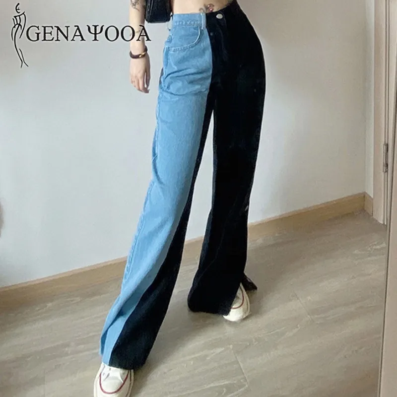 Джинсы Genayooa женские с завышенной талией, винтажные повседневные брюки из денима с широкими штанинами, уличная одежда из денима, черные синие, Осень-зима 2020