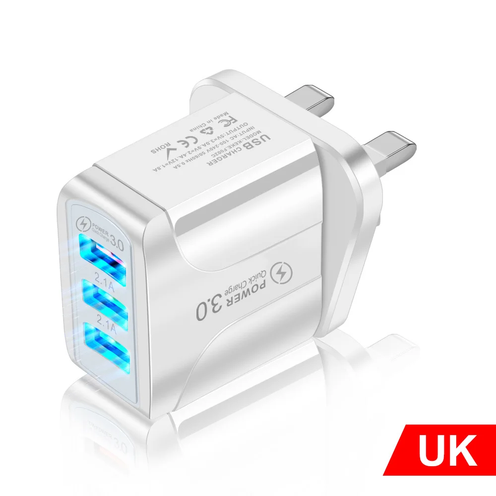 Универсальное настенное зарядное устройство для iPhone, быстрая зарядка 3,0 4,0 для смартфонов Huawei Xiaomi, быстрая зарядка с 3 USB-портами для ЕССШАВеликобритании