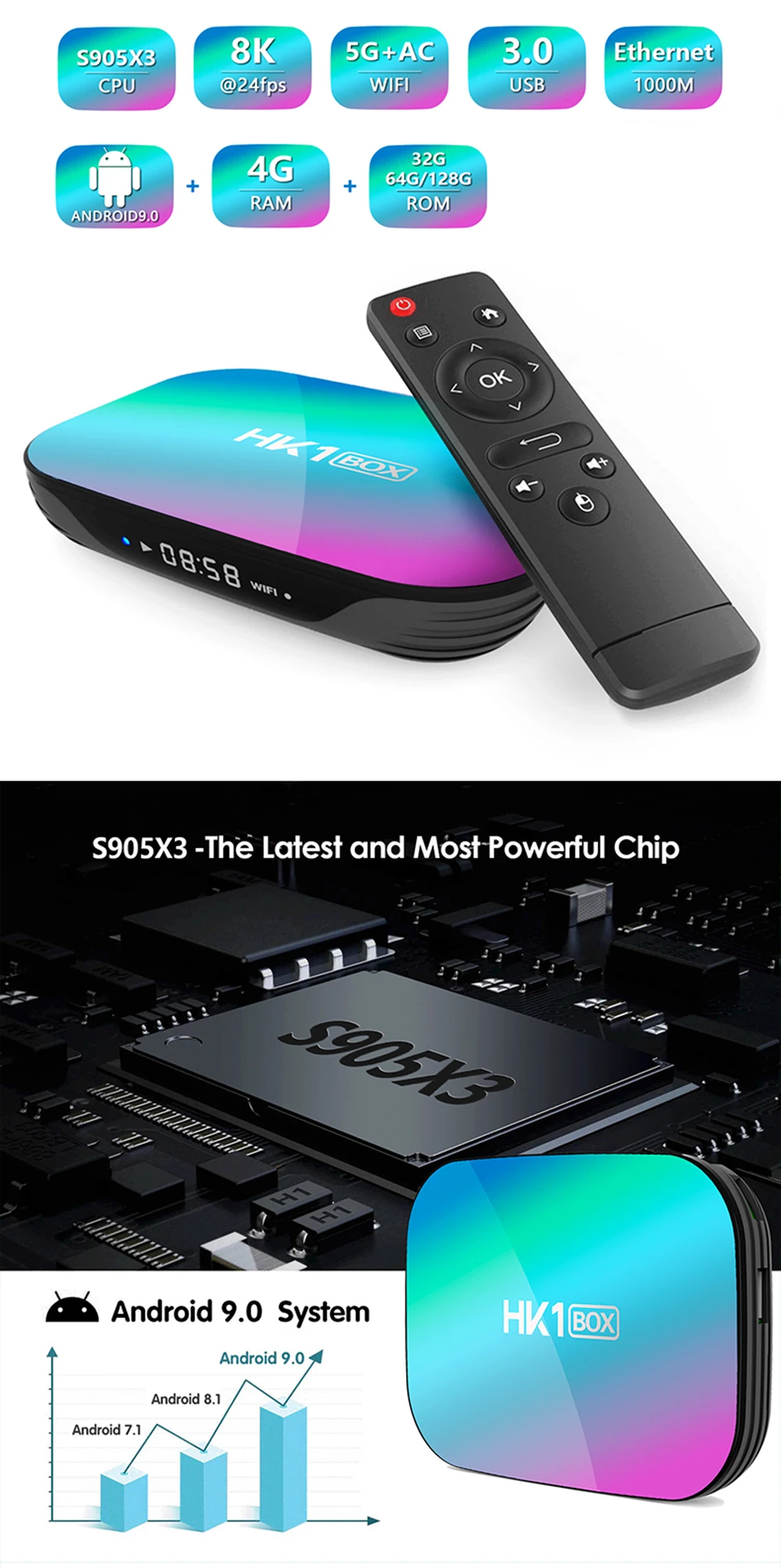 ТВ-приставка HK1 8K 4 ГБ 128 ГБ Amlogic S905X3 Smart TV BOX Android 9,0 1000M Dual Wifi 1080P 4K телеприставка HK1 Box медиаплеер