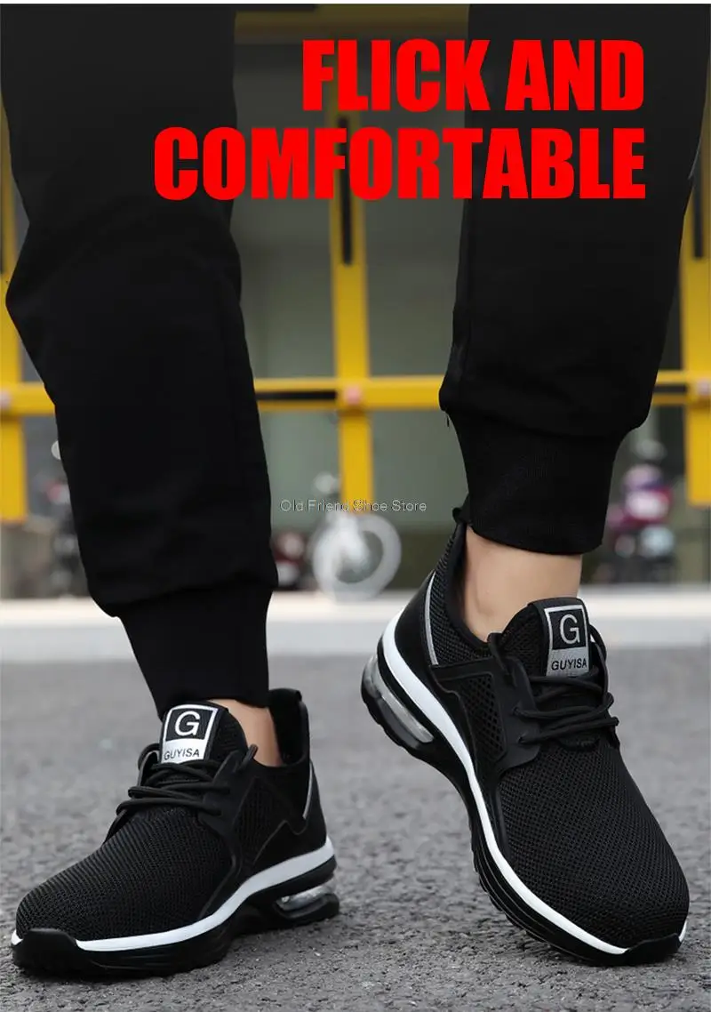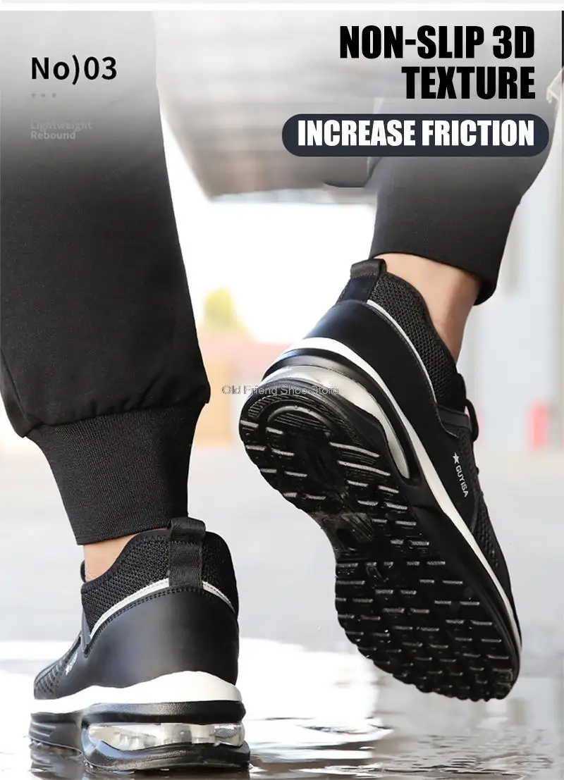 Прочная Мужская защитная обувь светильник Нескользящие рабочие кроссовки, дышащие мужские рабочие ботинки со стальным носком и защитой от проколов, с воздушной сеткой