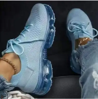 Кроссовки женские сетчатые с воздушной подушкой, легкие дышащие, вязаные, Вулканизированная подошва, на платформе, легкие спортивные, лето-осень 2021