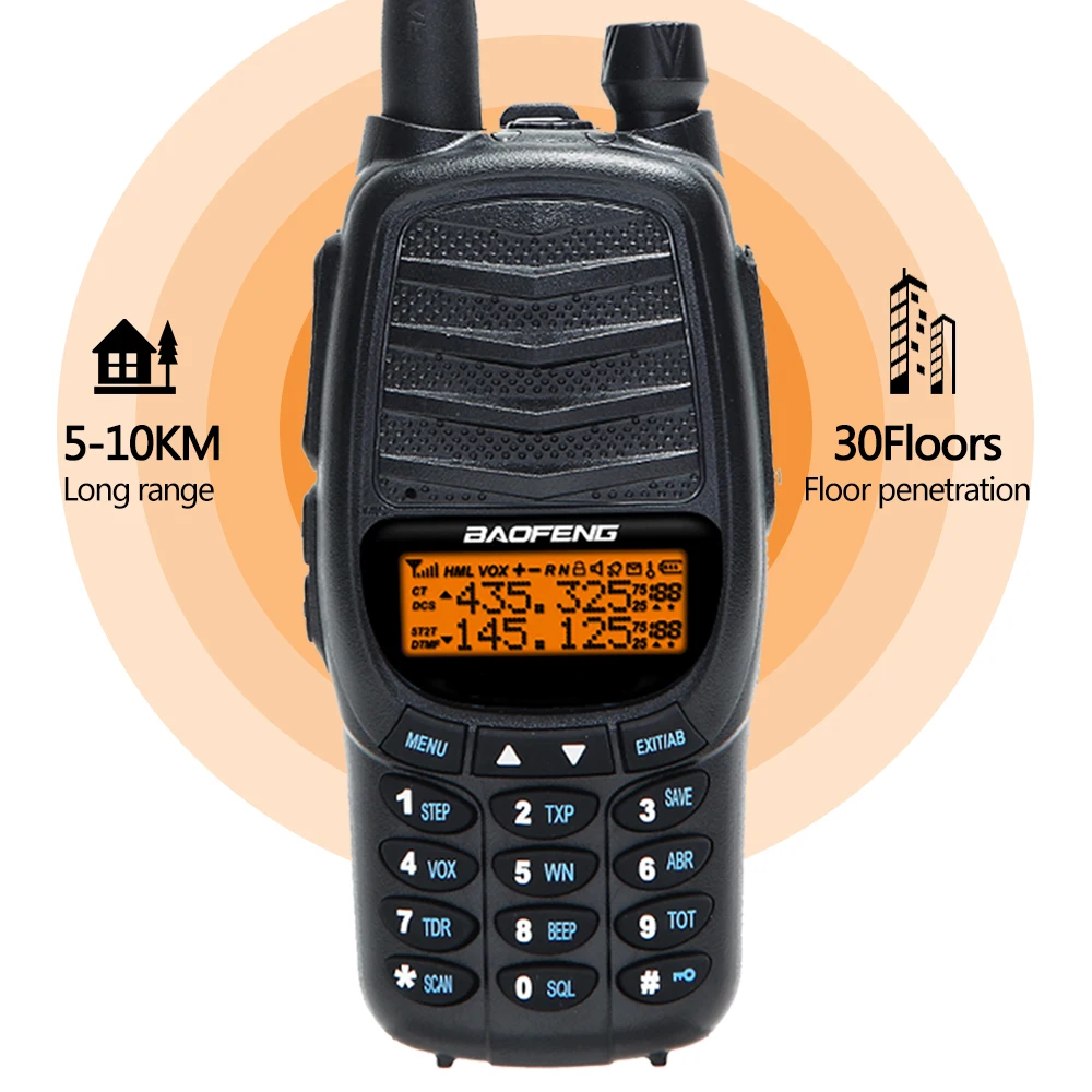 Три-поКанализационные Низкие/Средние/высокие настройки (1/4/10Ватт). Диапазон частот: 65-108 МГц (только FM),136-174 МГц и 400-520 МГц (TX/RX). 25 кГц/12,5 Кгц переключаемый (широкая/узкая). Двухдиапазонный портативный приемопередатчик с ЖК-дисплеемИ кнопка 2-PTT, поэтому используйте 2-PTT гарнитуру и микрофон PTT
