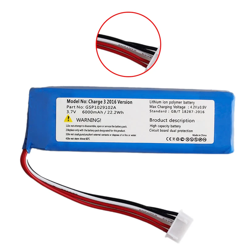 Сменный литий-полимерный аккумулятор 6000 мАч GSP1029102A для JBL Charge 3 версии 2016