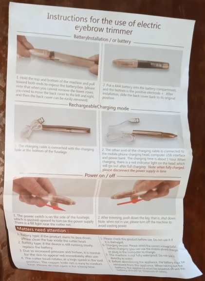 1. Удалите Волосы на лице мгновенно и безболезненно с губ, подбородка, щек2. Его конструкция обеспечивает удобную обработку3. Встроенный светильник, светильник работает при нажатии кнопки, и он достаточно яркий, чтобы хорошо осветить вашу поверхность4. Изготовлен из квалифицированного материала для длительного использования5. Быстро двигающийся резак для бритья длинных волос, но не слишком близко, чтобы ваша кожа оставалась удобной6. Легко моется, прост в эксплуатации, портативный для дома или путешествий7. Предназначен для удаления нежелательных волос на лице и теле8. Достаточно мягкий, чтобы использовать, дает вам превосходную производительность при эпиляции, обеспечивая Вам идеальную и долговечную гладкостьКак использовать:1. Скользящий переключатель в положение ON, светильник2. Использовать на чистой, сухой коже, тянуть кожу туго и двигаться в небольших, круговых движениях* Это нормально для удаления волос головы, чтобы стать теплым с использованием