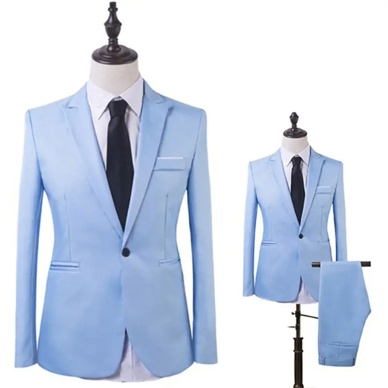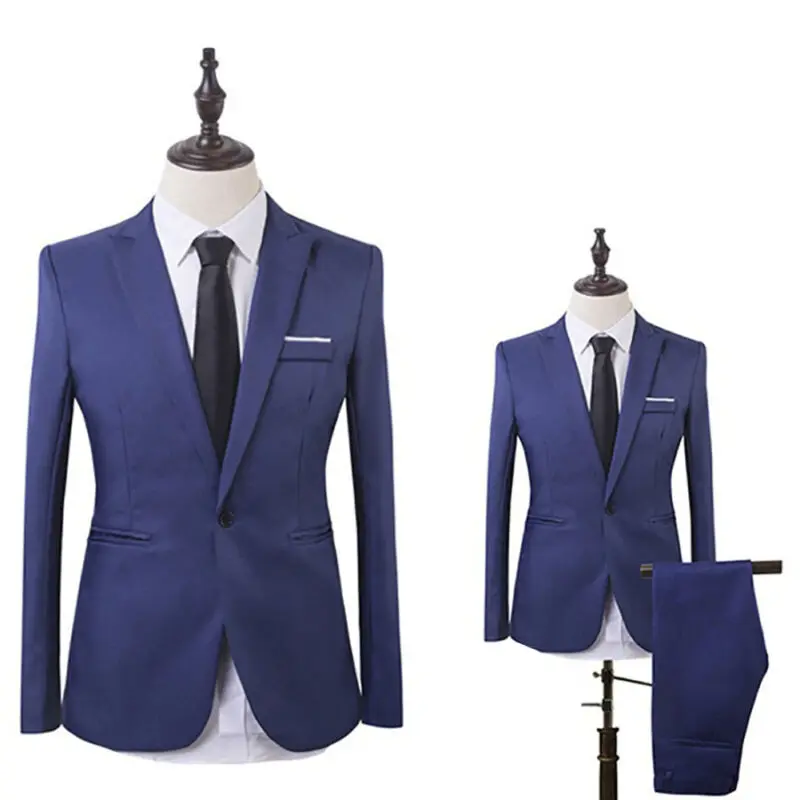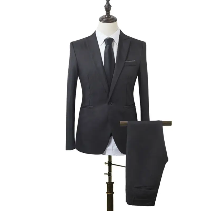 Мужской деловой костюм из двух предметов, облегающий деловой костюм для отдыха, официальный костюм для жениха на свадьбу, однотонный топ с длинным рукавом 2020, костюм из 2 предметов