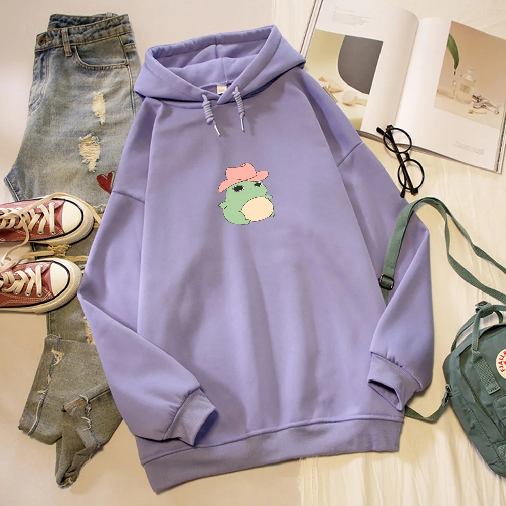 Лягушка капюшоном Толстовка с капюшоном забавные свободный свитер пуловер для девочек, в наличии размеры от 90s одежда гранж Уличная толстовки женские эстетику джемпер