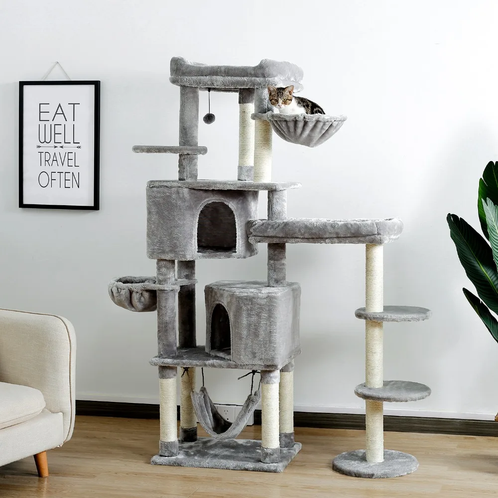 Домик на дереве для домашней кошки, Кондо, окунь, игровая площадка, устойчивая мебель для котенка, Многоуровневая игровая башня для больших кошек, уютное гнездо, из массива дерева