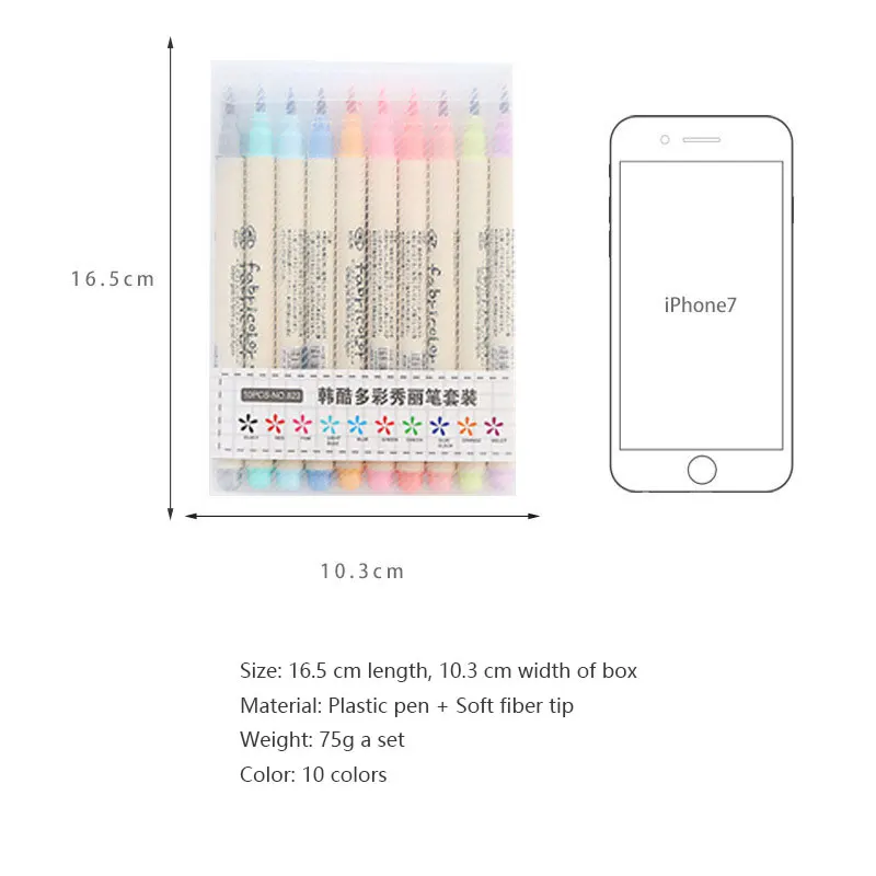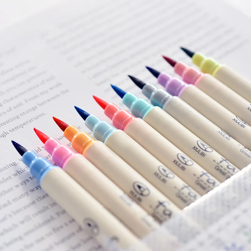 10 шт.партия Pastel маркеры-хайлайтеры кисть для рисования, ручка для школьных закладок с мягким волокном канцелярские принадлежности colores Манга
