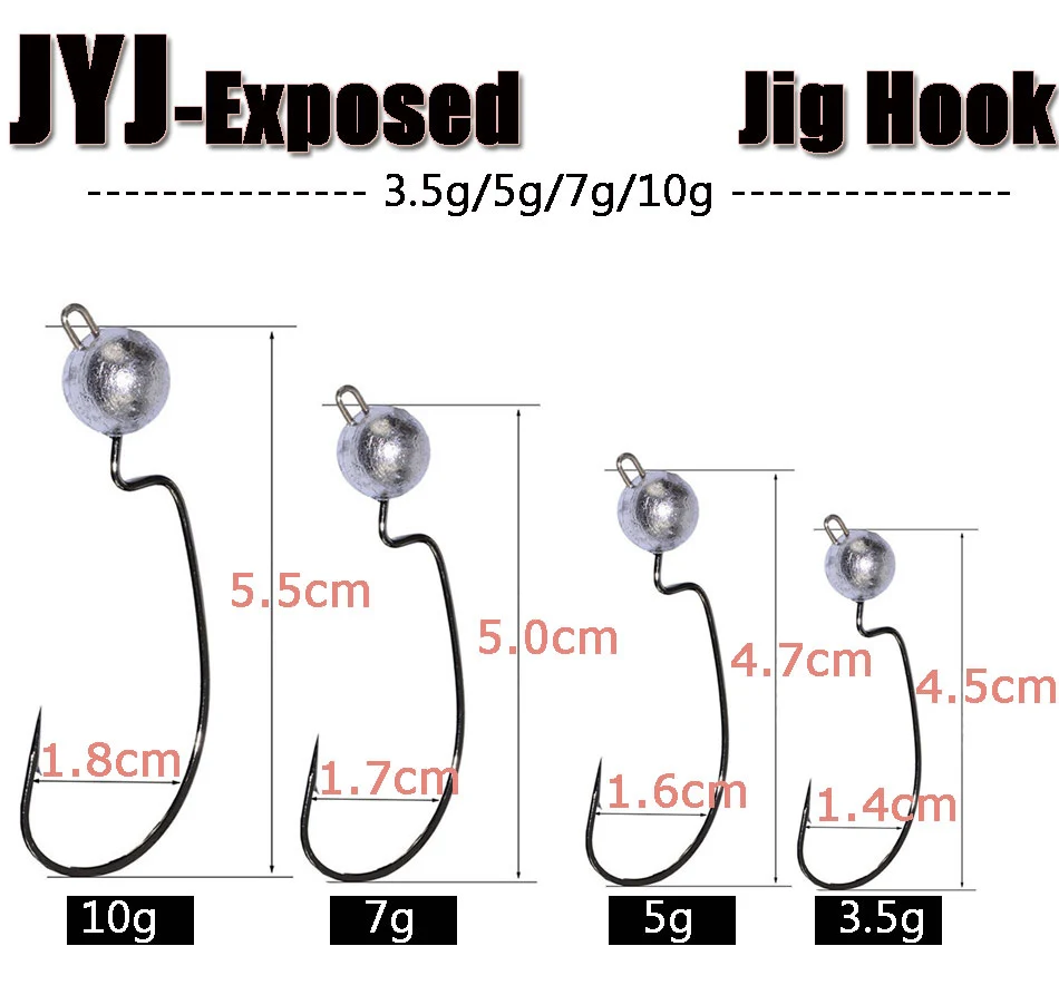 Джиг-головка JYJ с открытым кривошипным крючком, 10 шт., 3.5g, 5g, 7 г, 10 г, крючок с бородкой, Мягкая приманка, червь, рыболовные крючки, острая Мормышка, крючок для мягких червей