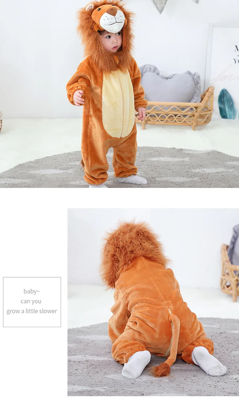 Комбинезон для новорожденных, комбинезоны с изображением Льва, с мультяшным принтом, мягкий, теплый