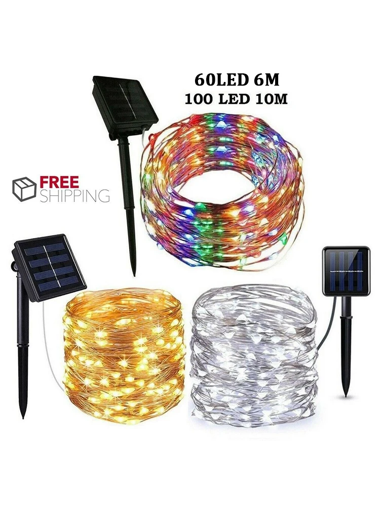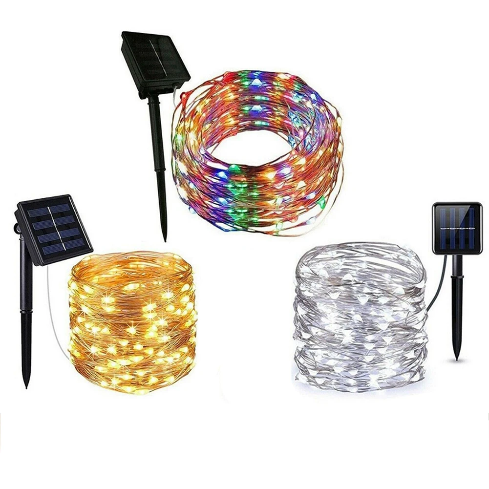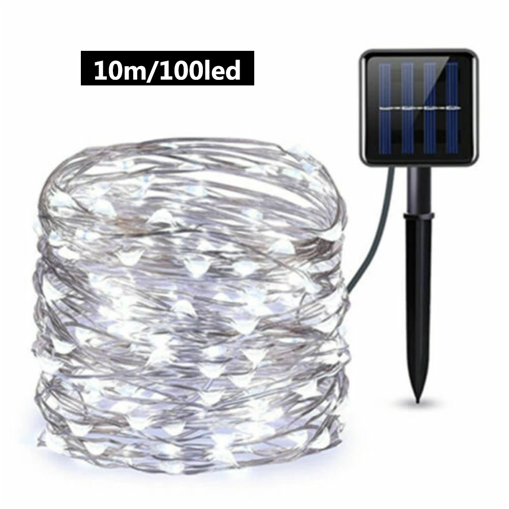 Светодиодная гирлянда, Рождественская гирлянда, украшение для дома и свадьбы, белый свет, теплсветильник свет, гирлянда RGB на солнечной батарее, водонепроницаемая медная гирлянда