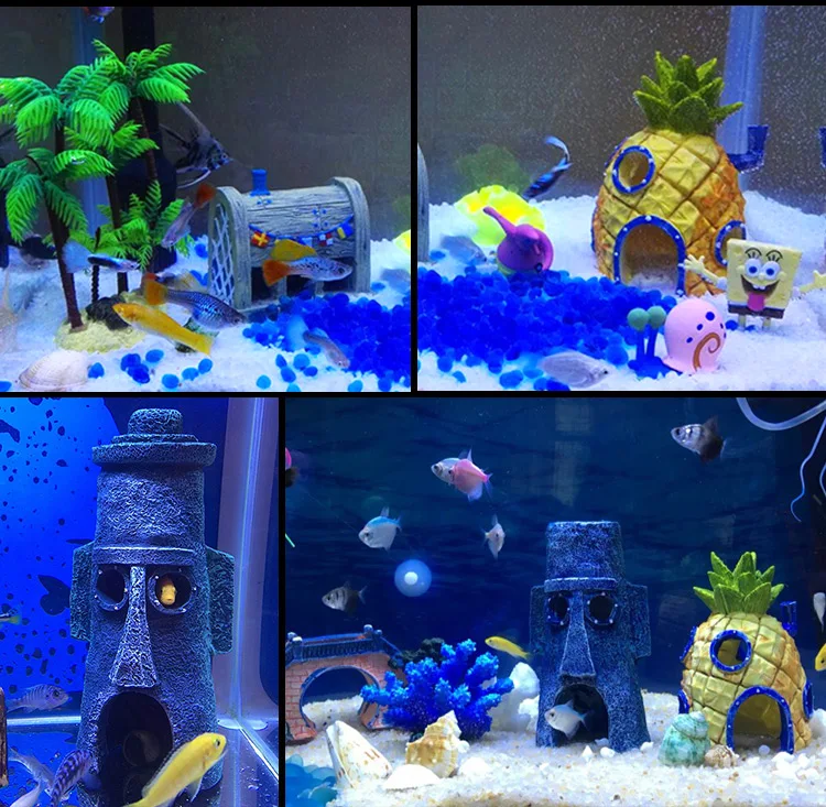 Аквариумные аксессуары дом в форме ананаса губка-Боб Квадратные Шта...