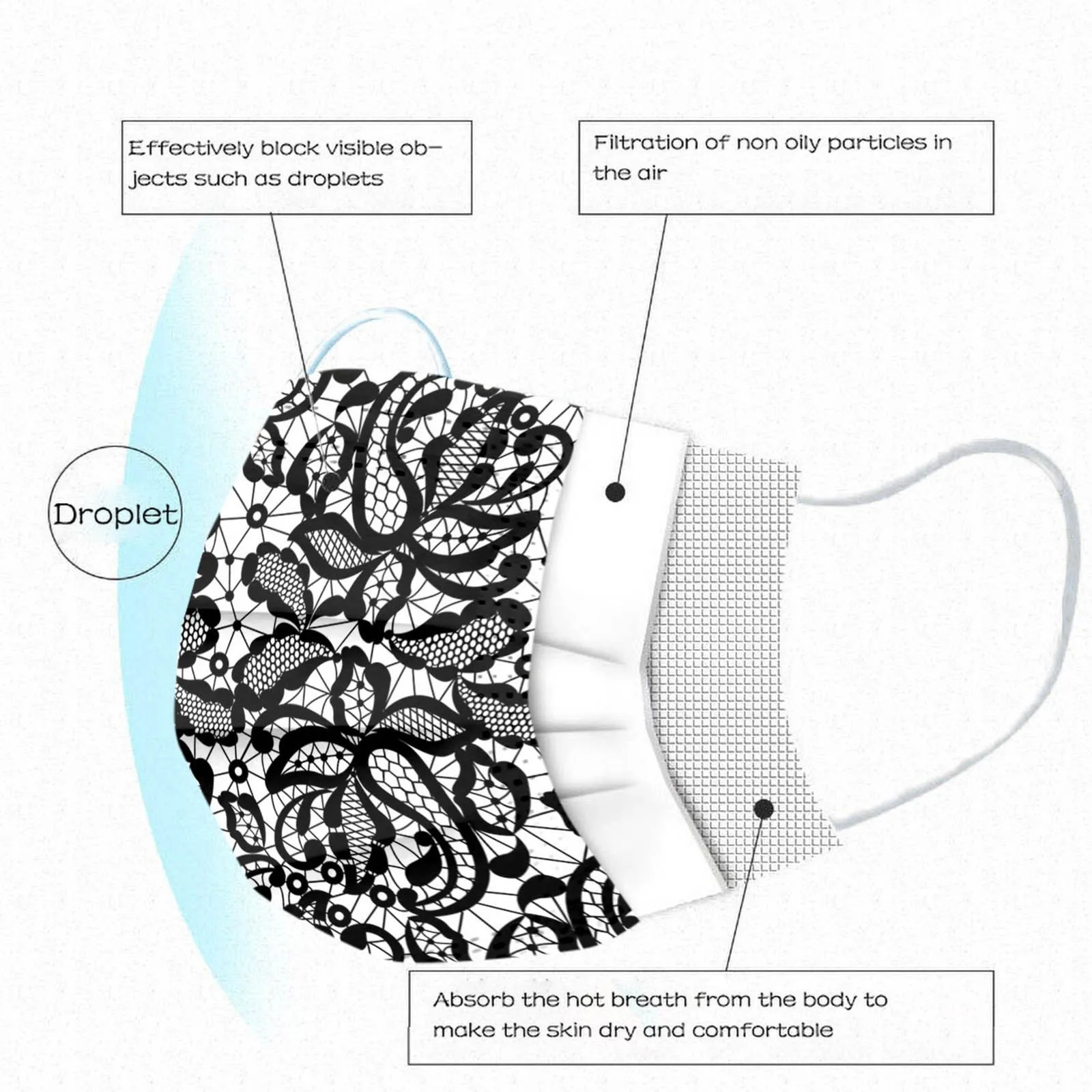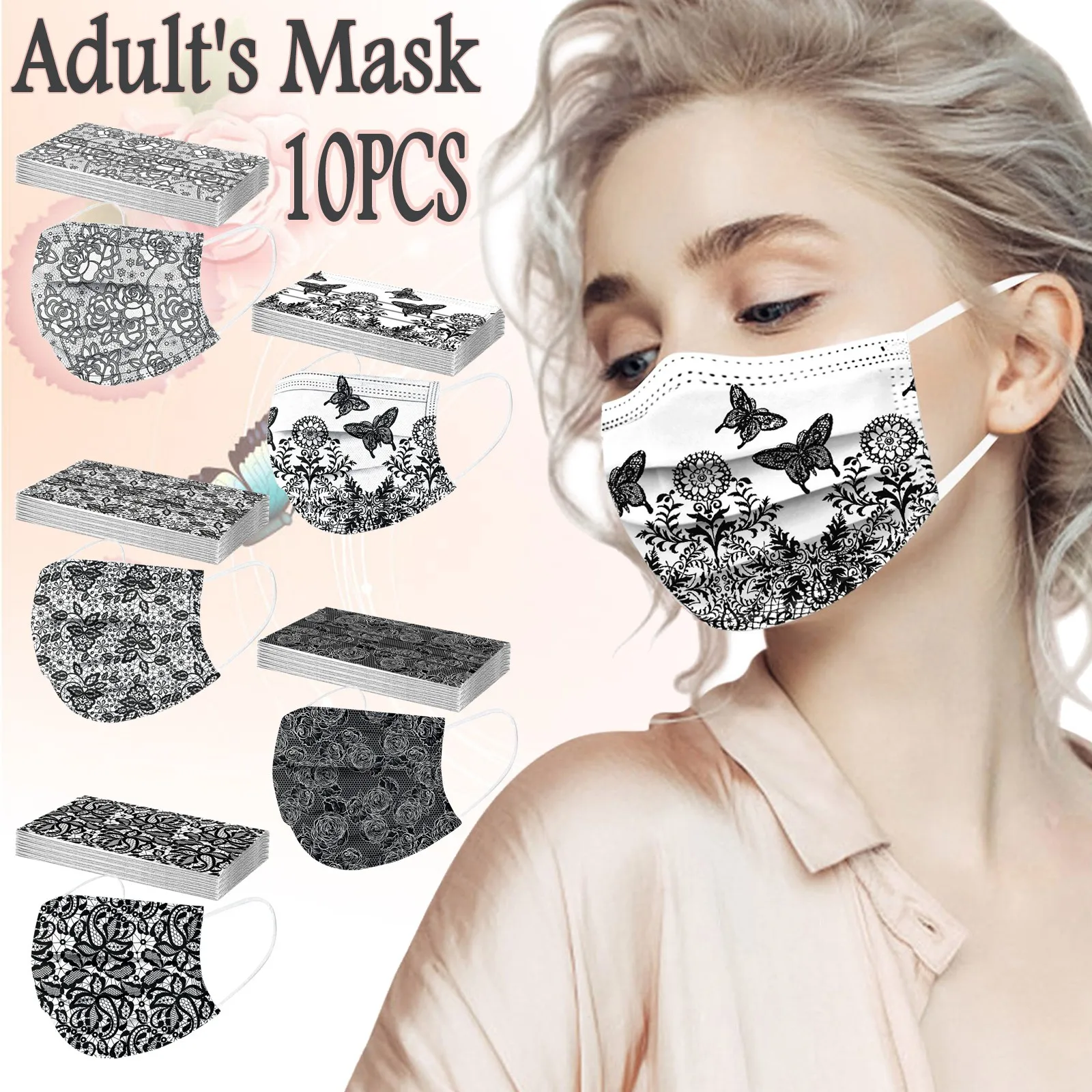 10 шт взрослая кружевная маска одноразовая маска для лица 3Ply Ушная петля PM2.5 маски