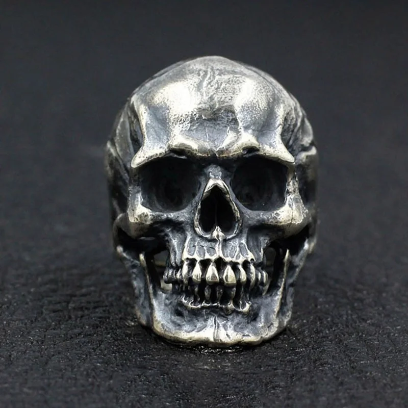 Тяжелые панк кольца с черепом для мужчин Настоящее 925 пробы Серебр...