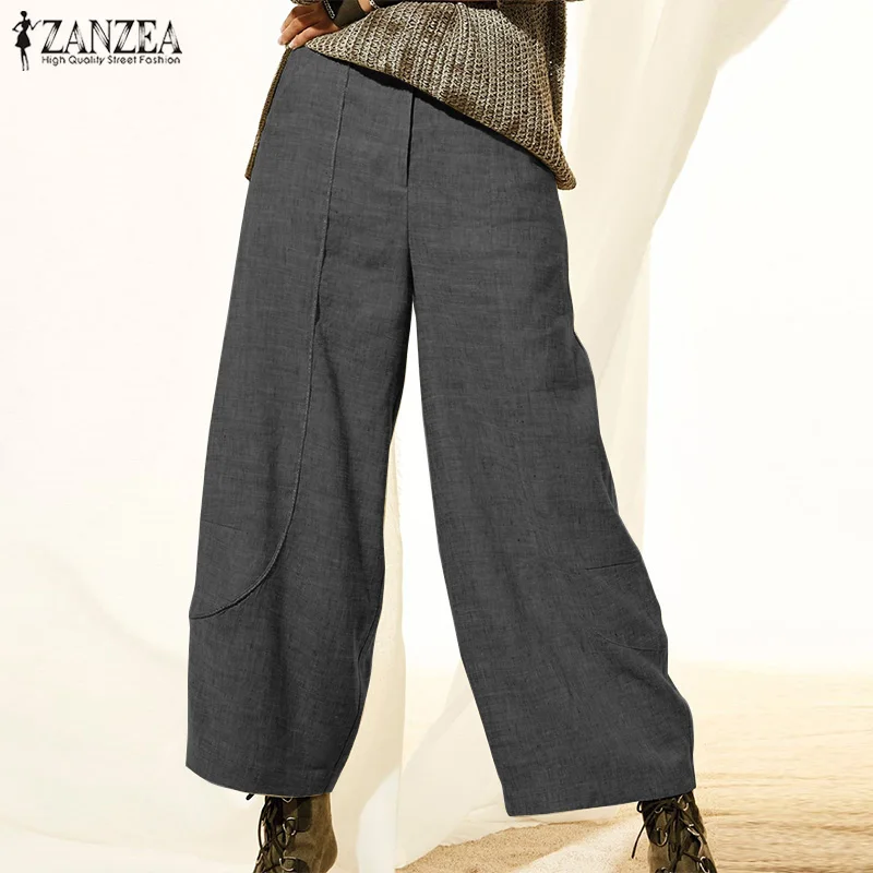 2021 элегантные хлопковые шаровары ZANZEA, Женские однотонные брюки...