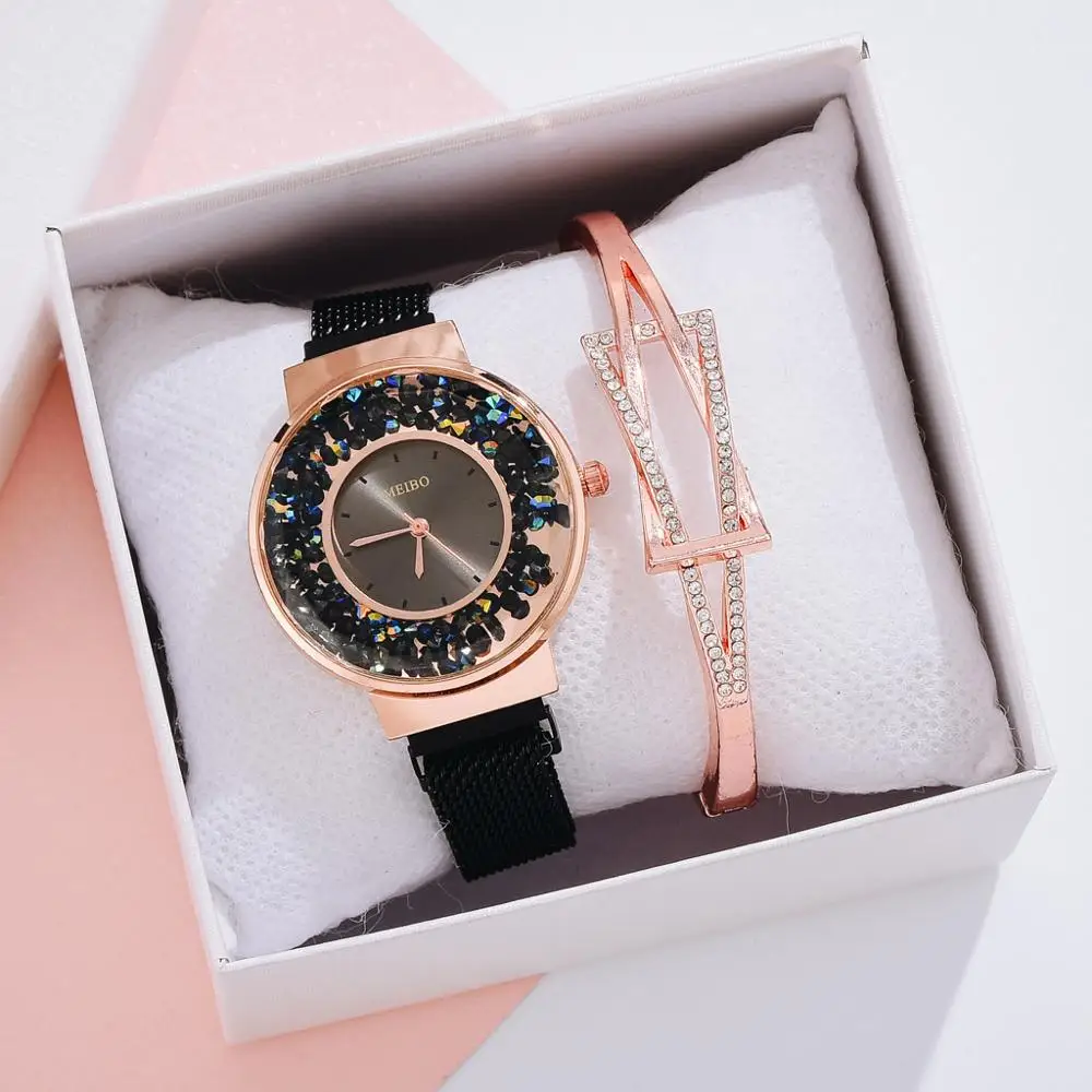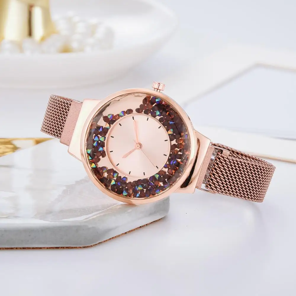Роскошные женские магнитные часы, модные женские кварцевые наручные часы цвета розового золота с кристаллами, повседневные женские часы-браслет, часы, женские часы
