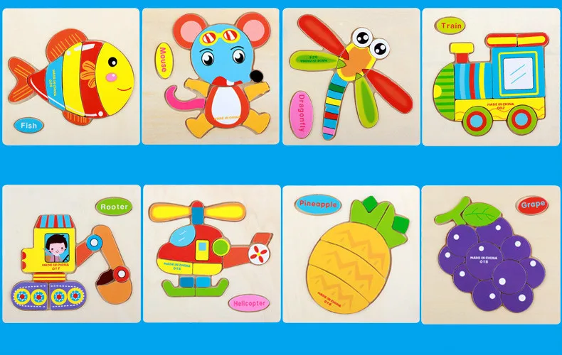 3D деревянные пазлы, Мультяшные животные, Детские когнитивные пазлы, деревянные игрушки для детей, Детские пазлы, игрушки, рождественский подарок
