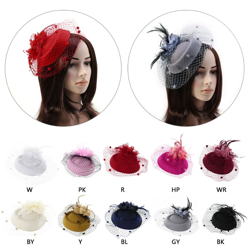 Вуалетка, заколка для волос, повязка на голову, шапка Таблетка, котелок, вуаль с перьями, для свадебной вечеринки, новинка, AXYD