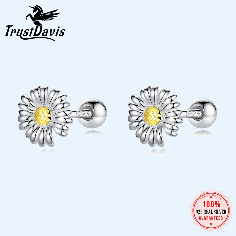 Серьги Trustdavis из настоящего серебра 925 пробы, серьги-гвоздики с цветочными бусинами и винтами для женщин и детей, ювелирные изделия из серебра 925 пробы DS1020